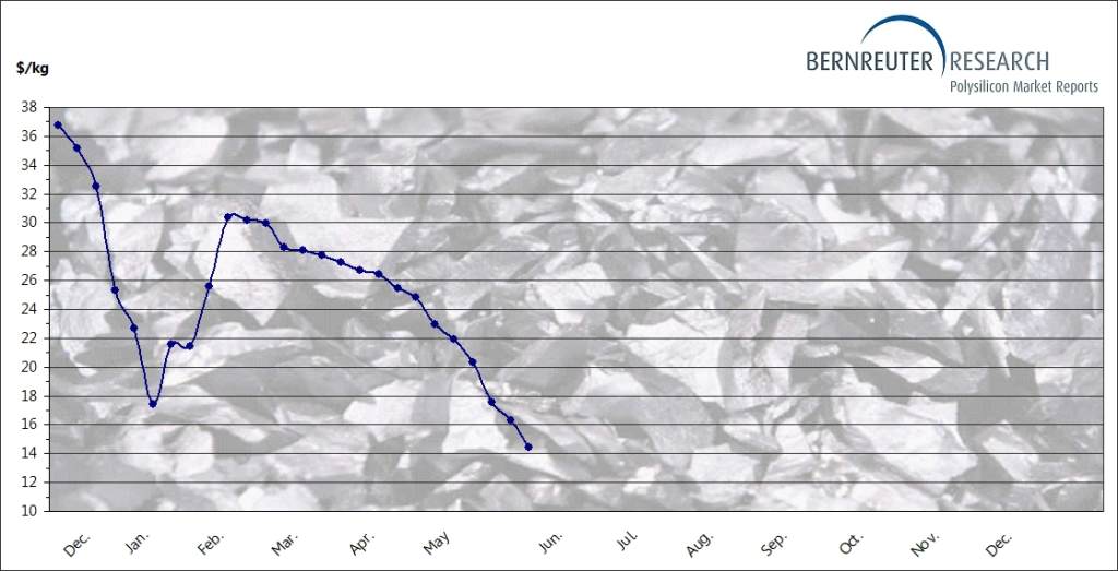 A cotação internacional do silício policristalino ou polissilício, principal componente do painel solar fotovoltaico, apresenta uma queda superior a 60% desde dezembro de 2022. Em função dessa queda, juntamente com a queda do dólar e do custo do frete internacional, o preço dos painés fotovoltaicos também vêm caindo. A redução dos preços torna o investimento na energia solar ainda mais interessante para os consumidores de energia elétrica. A cotação do polissício em dezembro/2022 em dólares era de $37/kg e atingiu $14,43/kg em 31/05/2023.